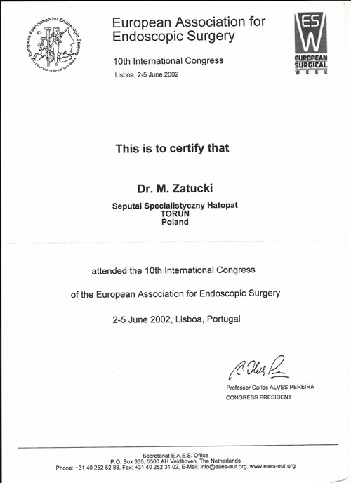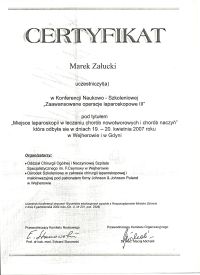 - Zaawansowany kurs chirurgii laparoskopowej Strasbourg/Francja 1997