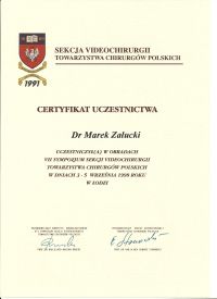 - Kurs chirurgii laparoskopowej, Warszawa 1992